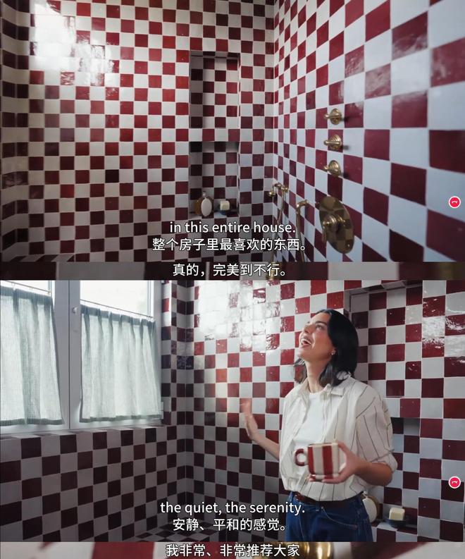 她觉得这种红白格子,会让人感觉安静、平和,所以推荐大家都打造一个同款。